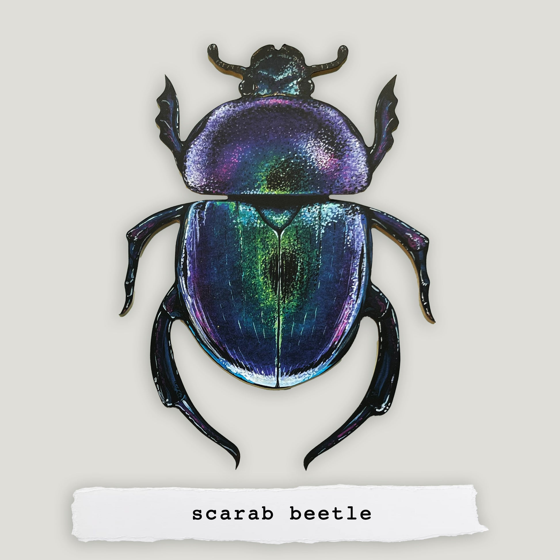 Add a vibrant and eclectic touch to your home with this handmade beetle! These paintings are the perfect addition to any wall or shelf. Each beetle is individually cut out of wood, sanded and finished to order.